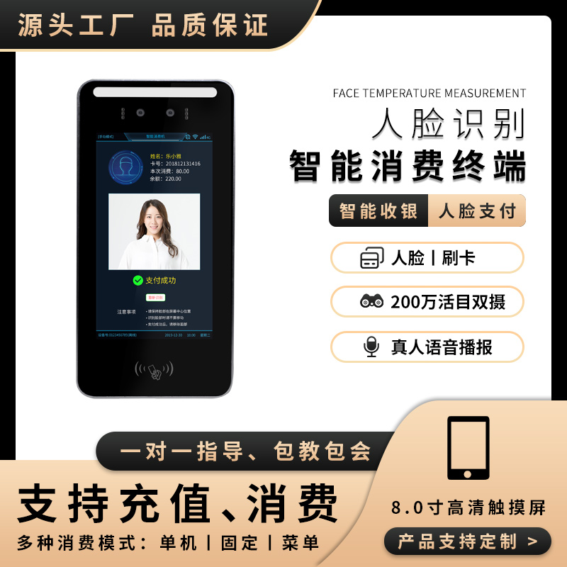 消費通道式人臉消費機,支持人臉/刷卡共用,曠視算法,2萬以上人臉庫,識別速度快,支持斷網脫機記賬功能;自助型食堂,無需人工管理,安裝通道式人臉消費系統,會員用戶就餐時刷臉扣費進入餐廳內,按時間段按餐次固定扣費,然后自行選餐,就餐后出門通道閘紅外感應自動開門。常用于機關單位、企事業等自助餐食堂。