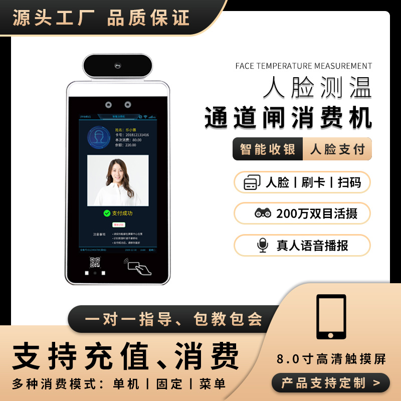 消費通道式人臉消費機(jī),支持人臉/二維碼/刷卡共用,曠視算法,2萬以上人臉庫,識別速度快,支持?jǐn)嗑W(wǎng)脫機(jī)記賬功能;自助型食堂,無需人工管理,安裝通道式人臉消費系統(tǒng),會員用戶就餐時刷臉扣費進(jìn)入餐廳內(nèi),按時間段按餐次固定扣費,然后自行選餐,就餐后出門通道閘紅外感應(yīng)自動開門。常用于機(jī)關(guān)單位、企事業(yè)等自助餐食堂。